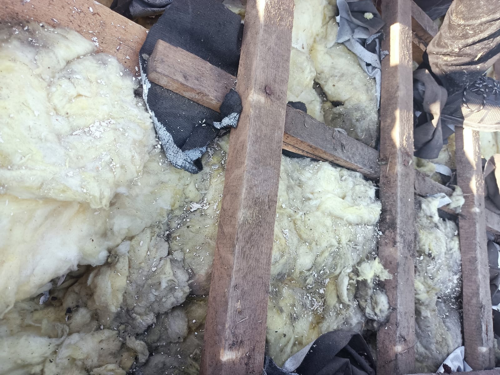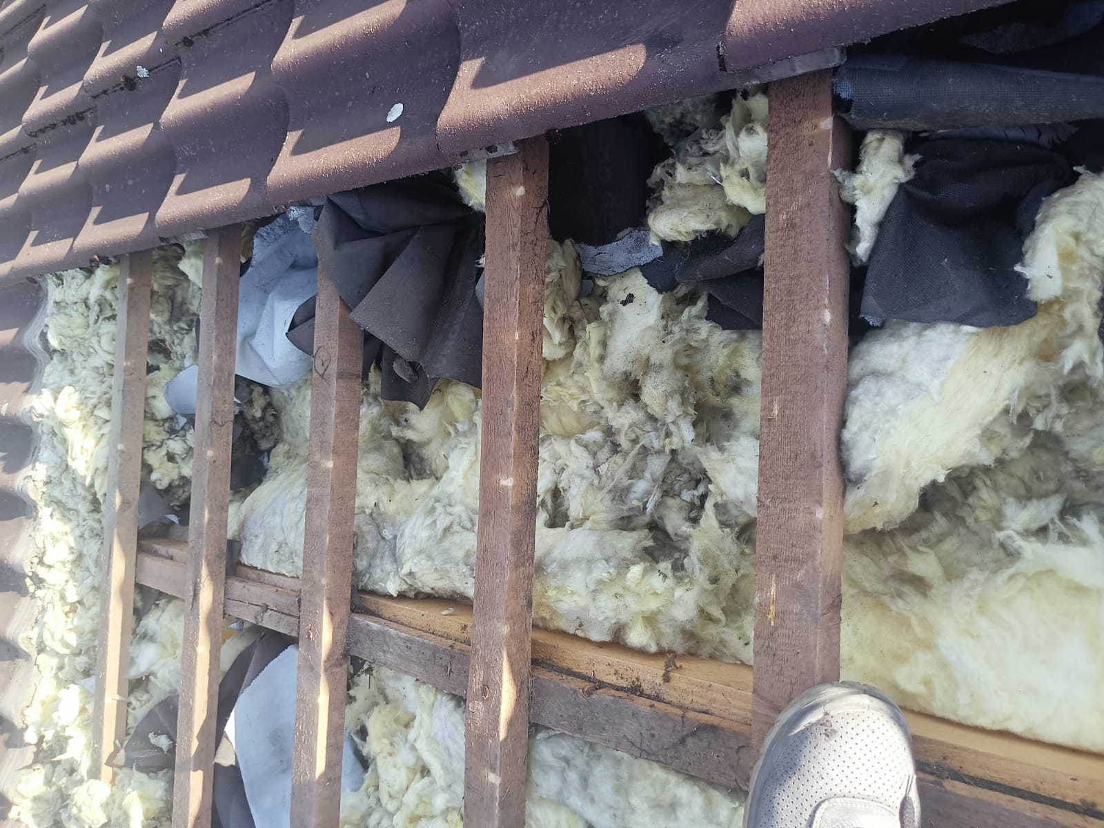 Naprawa obejmuje usunięcie zniszczonej izolacji, oczyszczenie poddasza, uzupełnienie ocieplenia (np. celulozą wdmuchiwaną) i uszczelnienie dachu.